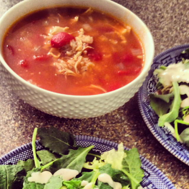 Left: Kale Pasta Bowl - I am obsessed with this recipe and it is a ton of food. Our plates look quite full of pasta, but there is a good amount of kale under it all! Right: Tomato, Chicken, and Rice Soup - this is comfort food for me, and this recipe goes a long way. It's really delicious leftover since it gets thicker over time. Served alongside a leafy green salad, it makes a filling but healthy meal.